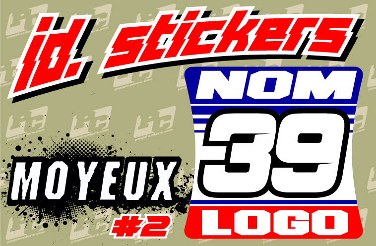 Stickers en vinyl épais dim: 47 x 49 mm Personnalisation des couleurs et des marquages.