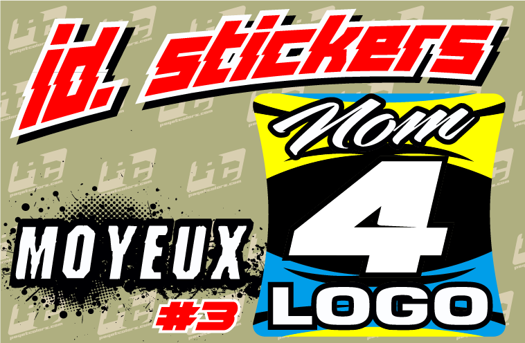 Stickers en vinyl épais dim: 47 x 49 mm Personnalisation des couleurs et des marquages.